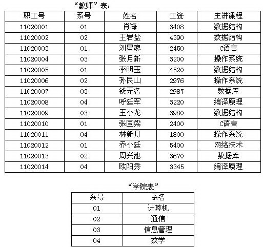 当前盘当前目录下在数据库:学院.dbc,其中有“教师”表和“学院”表。