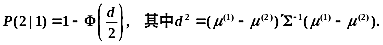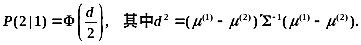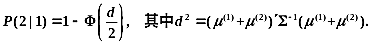 在两个p元正态总体 下,设 均为已知,又设线性判别函数为 判别准则为: ,则错判概率 为( )