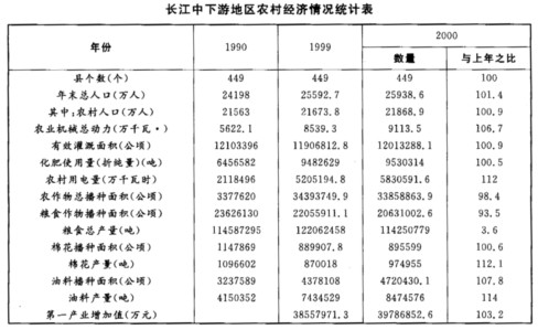 长江中下游地区农村2000年农作物总播种面积与1999年相比(
