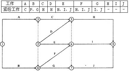 某分部工程中各项工作间逻辑关系见下表,相应的双代号网络计划如下图所示。