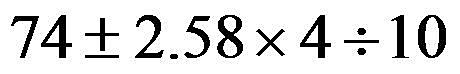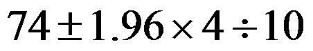 1992年在某地随机抽取100名健康女性,算得其血清总蛋白含量的均数为74g L,标准差为4g L,则其95%参考值范围估计为( )。